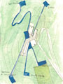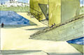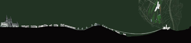 The open dynamic of the New City of Culture is expressed in "Fusion Plans." The institutions transcend autonomous entities - they fuse with each other like culture evolves: music with poetry and opera, literature with film and history. Fusion, the state or act of being united, brings the diverse programs of the complex into potential crystallizations. It is a dynamic programmatic union with overlapping and flexible connections. Shifts in program coalesce with turns and twists in plan and section. The expression of one building function distinct from another is synthesized in crystal architecture. Passages between and the connections between cultural areas become an important catalyst. The Museum of Galicia fuses with the Contemporary Museum, the Institute for Sound and Image to the Libraries in a crossover connection allowing many different programming options for curators and users. Open Center. The heart of the C.C. Galicia is an open center. On arrival one enters a monumental space with a large sheet of water open to the sky, framing the view of Santiago in the distance. Reflecting the stars and rain drops, this water is the source of five "Rias in Reverse" which flow down between spaces forming water gardens dedicated to the main Galician cities: La Coru–a, Lugo, Orense, Pontevedra and Santiago de Compostela. (continue) |