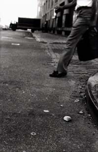 Dorothy Sayers put into the mouth of her resourceful hero, Lord Peter Wimsey: "If ever you want to commit a murder, the thing you have got to do is prevent people from associatin' their ideas. Most people don't associate anythin'- their ideas just roll about like so many dry peas on a tray, makin' a lot of noise and goin' no where, but once you begin lettin' 'em string their peas into a necklace, it's goin' to be strong enough to hang you, what?" Consider washers, the class of all classes that do not belong to themselves. Where does a discarded washer on the street belong? If a found washer belongs to the class of washers, it should not by the definition of the class of washers. If this washer does not belong to the class of washers, it should by the definition of washers. But this contradiction strikes at the very notion of classes of objects, a paradox with a catastrophic effect on our understanding of the world. I run through it in my mind. The lack of adequate indications to what happens after the washers fall and the ambiguity about precisely what Solange Fabiao and her washers are prey to, what ever transform them, these magnificent icons are still what puzzle her and what will continue to puzzle us. Extremely deep and vivid emotion which seeing the entire series gives, is doubtless, as our chance encounter as we are walking in the streets of Venice, Rome and New York often provoke, searching for objects that can be found nowhere else: cast aside, neglected, useless, almost incomprehensible, even perverse, in AndrŽ Breton's sense. For example, these washers. These irregular disks, silvery, covered with relief and depressions that are meaningless to us, streaked with diagonals, vertical and horizontal incisions of use and time. Here, in Solange Fabi‹o framed photographs, they are preciously set, almost nestled in black and white prints pressed and distanced under glass. Careful examination enables us to identify with their fate as their own identity is further removed from our grasp. A random sequence of events for ever beyond our ken, has brought them across our path; what part of a device they had been in their former life, how ever they operate in the cities of vast population in such and such address and in such and such date, though all of this will make it no more comprehensive, our attention is simultaneously caught by Solange's version of these washers lost in wretched circumstances, worthless incidents. Fortunately she decided to leaf through these incidents, for she has the time of her life to discover somewhere, somewhere else a washer, stuck at the edge of a cobble stone, partly hidden in melted asphalt - a copy of a poem written in silver rings. Clouds and rings of smoke in her blood (Lorca), she leaves us not much time to learn more of these unexpected circumstances. These works on paper and what they contain belong to her as nothing else. We are engaged for the duration, we too have become implicated in her devotion to these iron beads of her choice, her favorite settings, there, where they originally met. Upon our request, she may give the narrative of the images we find so condensed and definitely framed. It is remarkable, first of all, that these chance encounters had happened, what's more, that their neutrality, their objecthood suppressed everything we regard as having a fabulous value, like an extract of amber or an ageless attar of roses. On the other hand, we must admit seeing quite clearly what has occurred, a washer from some kind of machine, slipped into a slot inadvertently, as we struck it again with an eye blink, it is as if it fell on our head. Somewhere, in a distance and foreign city, a washer, a ring, normally under a nut has fallen. Metal beads of a story, a story told of an invisible city pierced for threading on string of neckless, or rosary, a pray for a day, for an hour. They were thrown, on and in our way. A washer, as a word in America, it might be understood as hole in the road, made by rushing water. But the work of art is the product of a different self from the self we manifest in our habits, in our social life, in our habits, in our vices. That kind of stringing together, a correlation of incidents which well up into our minds, endlessly we scrutinizing them for differences and likenesses. A sign among many other possible sign, a signature, a mark. As an act of involuntary memory, whether worked by a madeleine dipped in tea, not far from Chartre, or by uneven paving stone under foot, recaptured lost time and revealed to Solange her vocation as a painter. New York,April, 2000 Yeruda Safran |